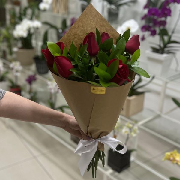 O Buquê com 6 Rosas Vermelhas e Ruscus é a escolha perfeita para quem busca presentear com elegância em um estilo minimalista. As rosas vermelhas, símbolos de amor, paixão e intensidade, ganham ainda mais destaque acompanhadas pelo ruscus, folhagem verde que confere sofisticação e frescor ao arranjo.